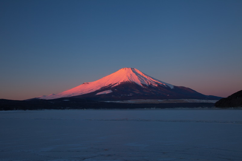 冠雪が陽光に照らされてピンク色に染まるのを「紅富士」と呼びます。